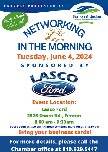 Come and network with Chamber members! Chamber announcements, speed introductions and one-minute commercials complete with door prizes!